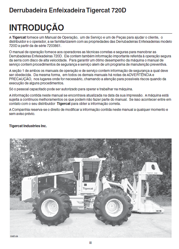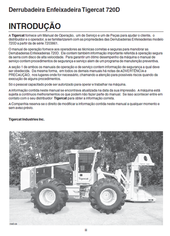 This service manual contains comprehensive technical information for servicing the Tigercat 720D Feller Buncher. Downloadable in PDF format, the manual covers models 7203501 to 7204400 and 7203861 to 7204400.