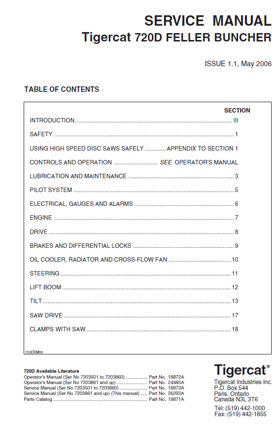 Download Complete Service Manual For Tigercat 720D Feller Buncher | Serial No. (7203501-7204400, 7203861-7204400)