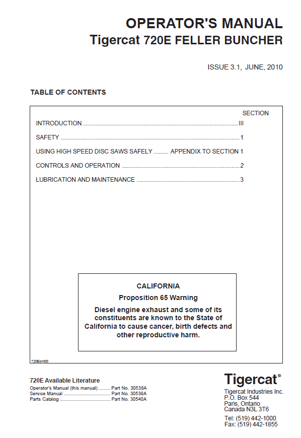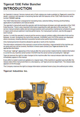 Download Complete Operator Manual For Tigercat 720E Feller Buncher | Serial No. (7204401 - 7205500)
