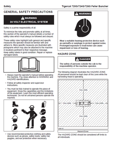 TIGERCAT 720G FELLER BUNCHER OPERATOR MANUAL (7205601-7208500, 7205601-7206600) - PDF FILE DOWNLOAD