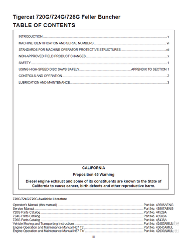 Download Complete Operator Manual For Tigercat 720G Feller Buncher | Serial No. (7205601-7208500, 7205601-7206600)