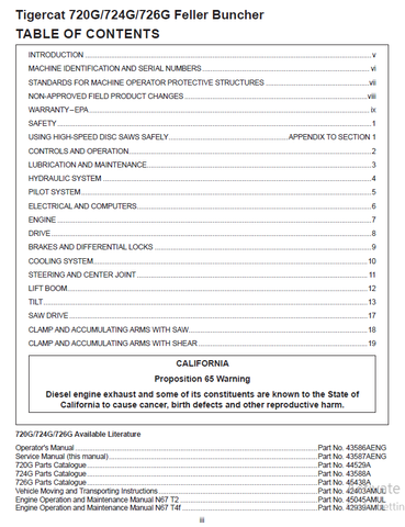 This expertly crafted Tigercat 720G Feller Buncher Service Manual covers the 7205601-7208500 and 7205601-7206600 models. With its comprehensive PDF file download, it's the perfect choice for any tech professional needing detailed information on installation, repair, and adjustment. Get the job done right with the Tigercat 720G Feller Buncher Service Manual.