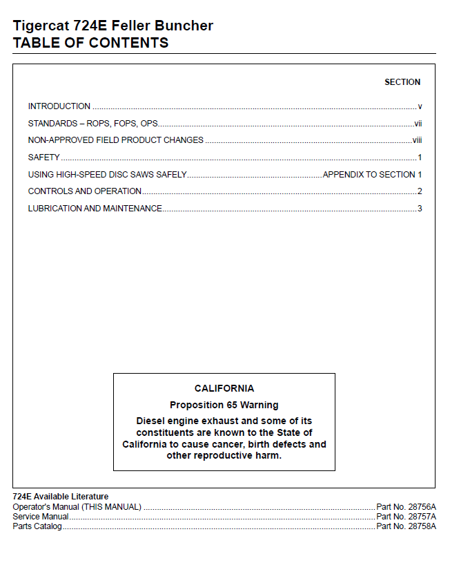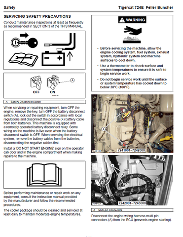 Download Complete Operator Manual For Tigercat 724E Feller Buncher | Serial No. (7241001-7243100, 7241001-7243000)