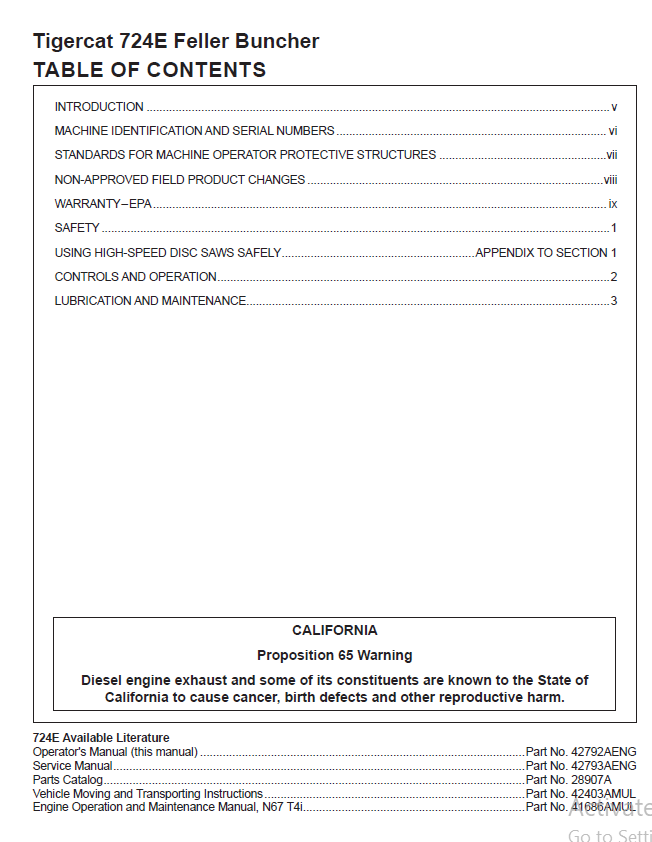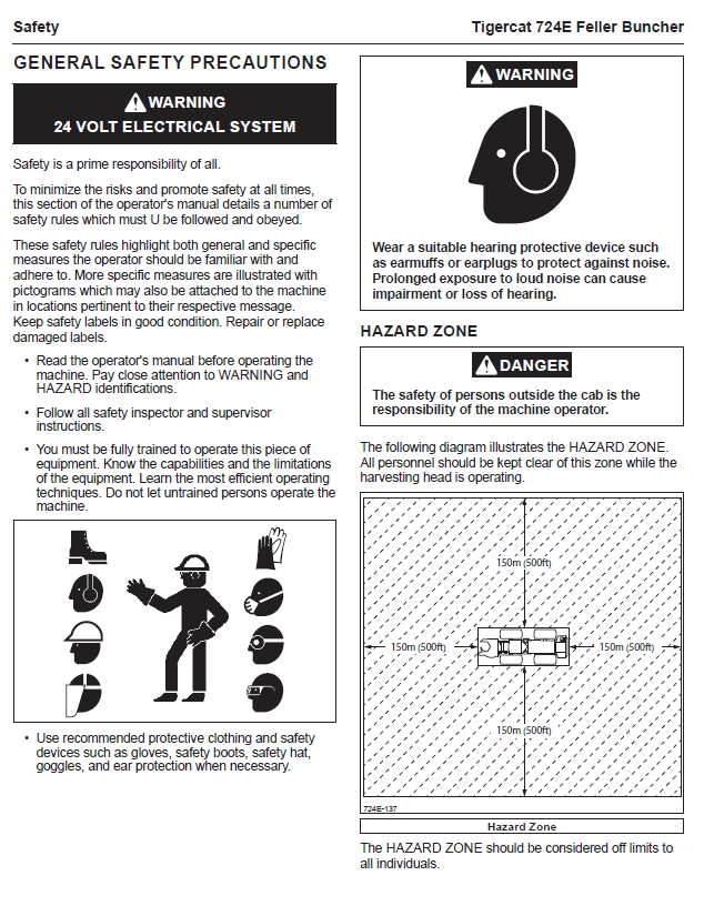 Download Complete Operator Manual For Tigercat 724E Feller Buncher | Serial No. (7241001-7243100, 7243001-7243100)