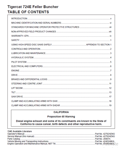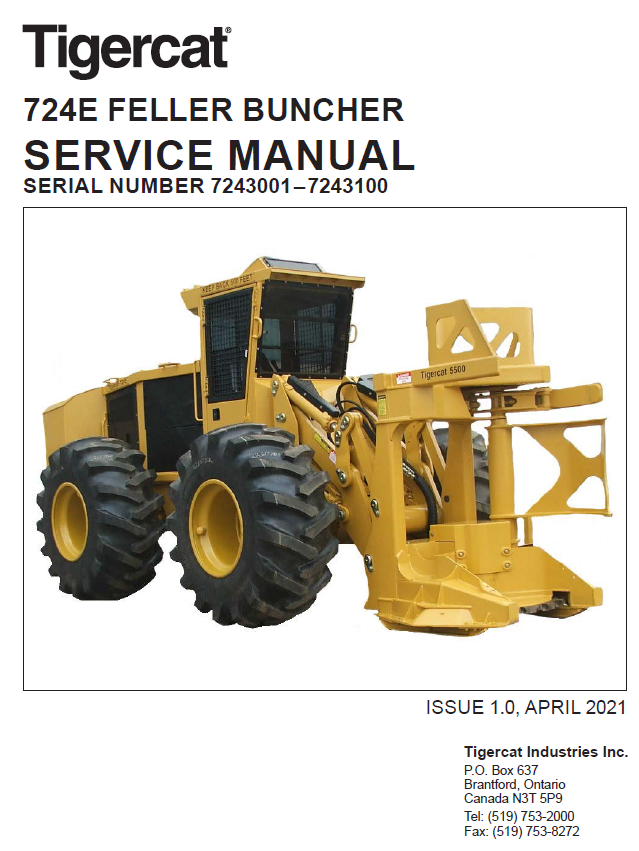 Download Complete Service Manual For Tigercat 724E Feller Buncher | Serial No. (7241001-7243100, 7243001-7243100)