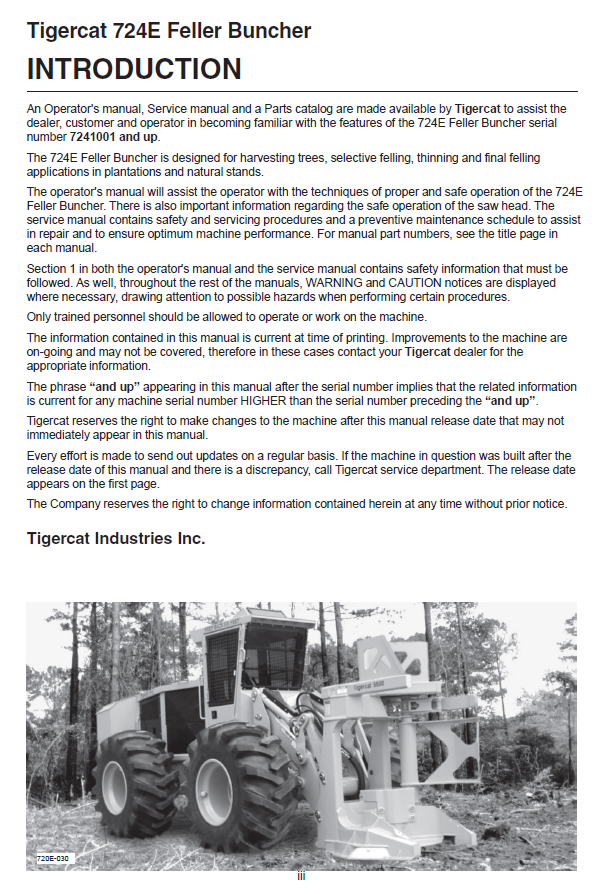 TIGERCAT 724E FELLER BUNCHER MANUAL