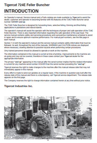 Get the most out of your Tigercat 724E Feller Buncher with this factory service manual. Covering models 7241001-7243100 and 7241001-7243000, this essential PDF download provides detailed instructions and illustrations for maintenance and repair of your equipment.