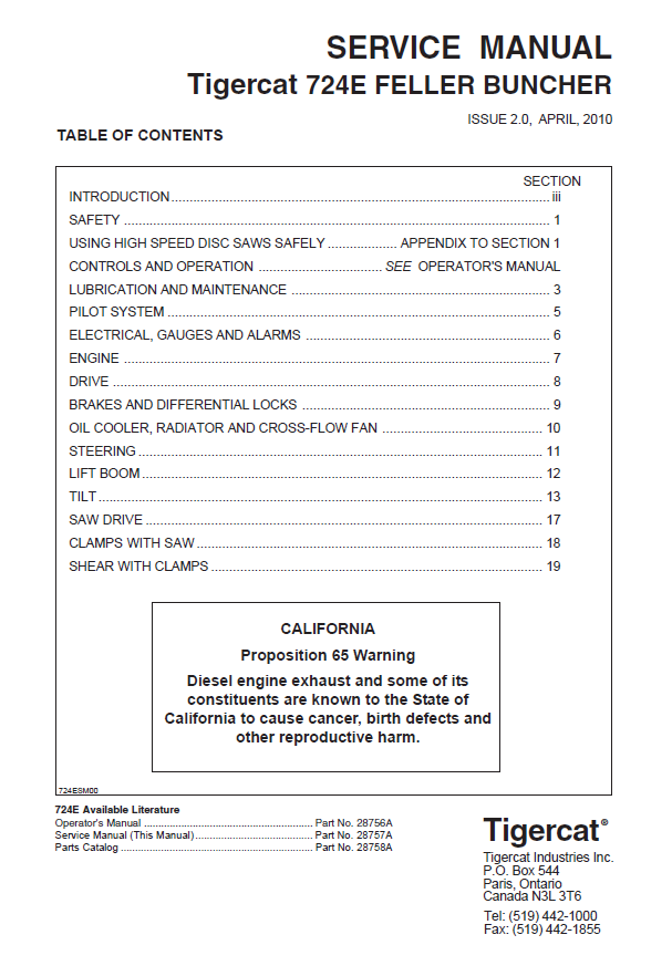 Download Complete Service Manual For Tigercat 724E Feller Buncher | Serial No. (7241001-7243100, 7241001-7243000)