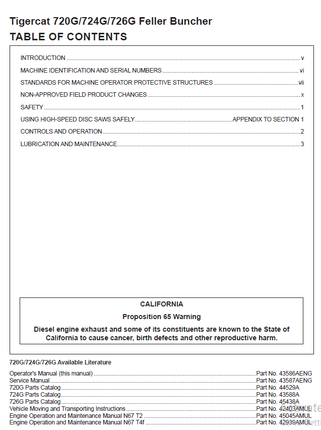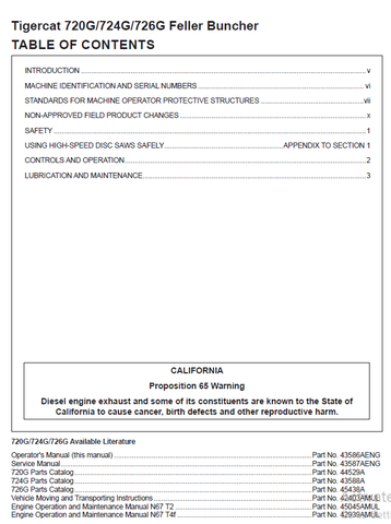 TIGERCAT 724G FELLER BUNCHER OPERATOR MANUAL (7243101-7246000, 7243101-7244000) - PDF FILE DOWNLOAD