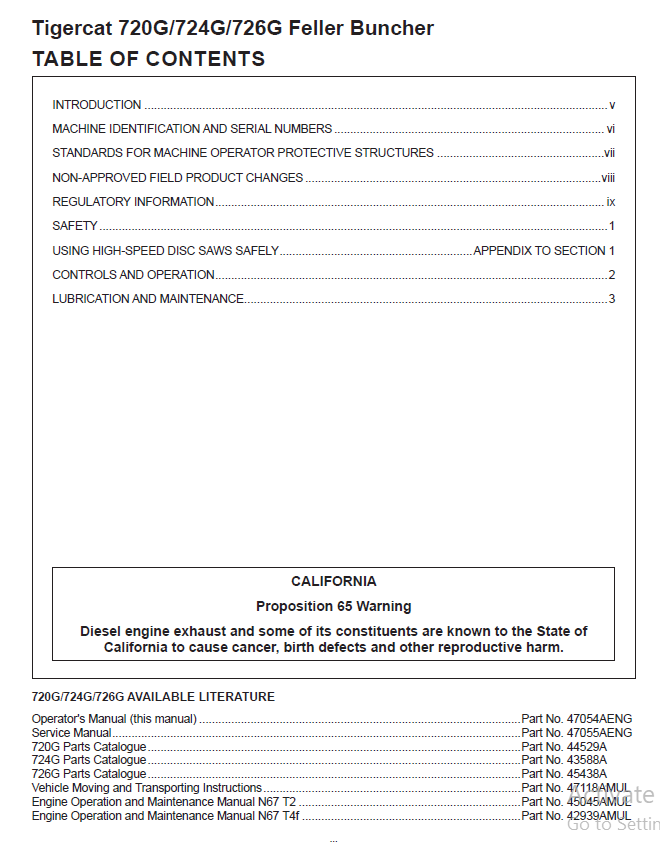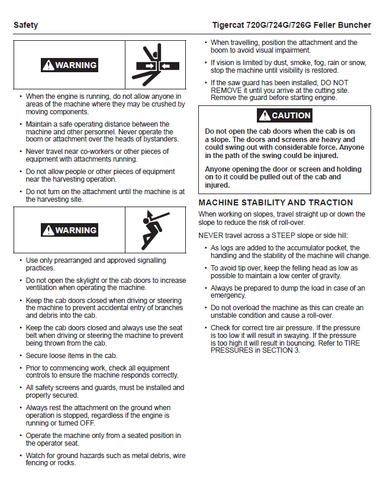 Download Complete Operator Manual For Tigercat 724G Feller Buncher | Serial No. (7243101-7246000, 7244001-7245000)