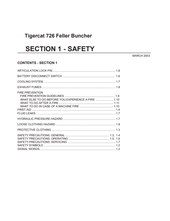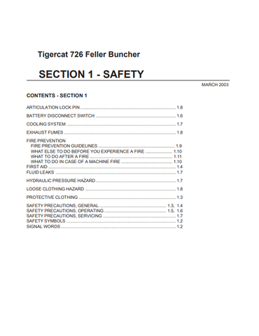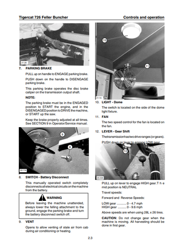 TIGERCAT 726 FELLER BUNCHER OPERATOR/USER MANUAL (7260101-7260999) - PDF FILE DOWNLOAD