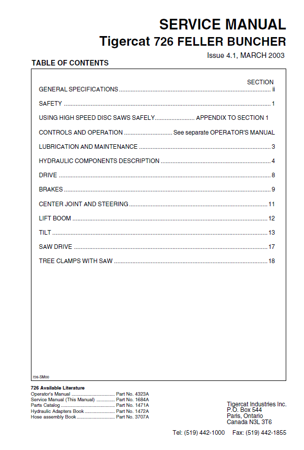 TIGERCAT 726 SERVICE MANUAL