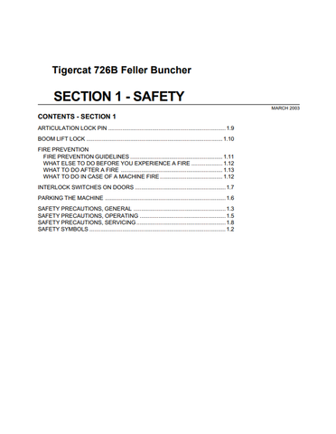This Tigercat 726B Feller Buncher Operator/User Manual (7261001-7261999) provides users with all the necessary information to safely and effectively operate their machine, enabling maximum productivity. The manual is a comprehensive PDF file download, providing clear and detailed instructions to help users understand and operate the 726B Feller Buncher.