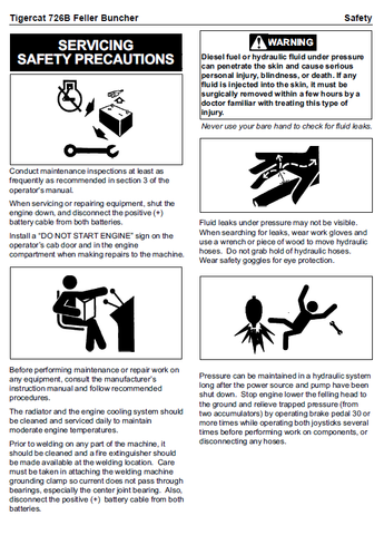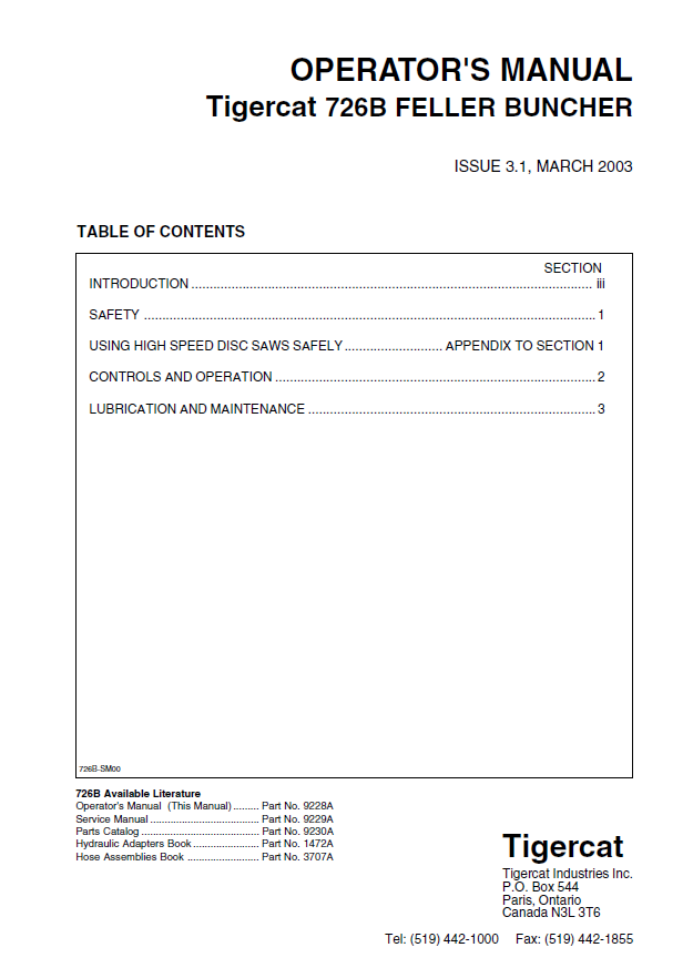 Download Complete Operator Manual For Tigercat 726B Feller Buncher | Serial No. (7261001-7261999)