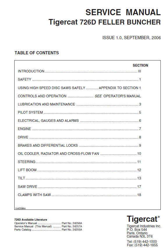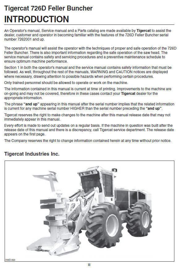 Download Complete Service Manual For Tigercat 726D Feller Buncher | Serial No. (7262001-7262499)