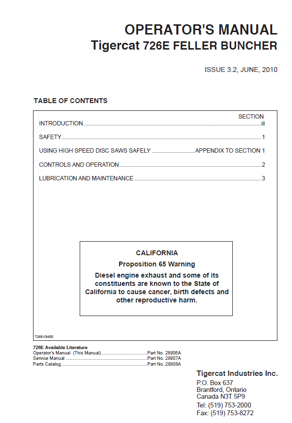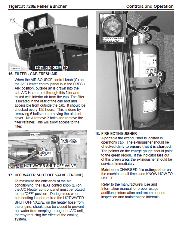 Download Complete Operator Manual For Tigercat 726E Feller Buncher | Serial No. (7262501-7265000, 7262501-7264000)