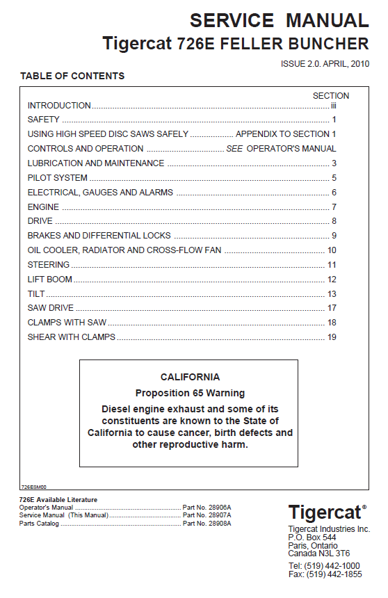 TIGERCAT 726E FELLER BUNCHER MANUAL