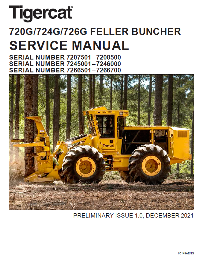 Stay up-to-date on service maintenance for your Tigercat 726G Feller Buncher with this PDF-format Service Manual. Comprehensively covers models 7265001-7266700 and 7266501-7266700. Rely on this comprehensive manual for valuable information and guidance.