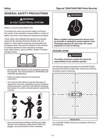 TIGERCAT 726G FELLER BUNCHER OPERATOR/USER MANUAL (7265001-7266700, 7266001-7266500) - PDF FILE DOWNLOAD