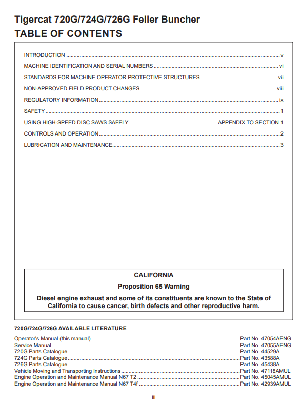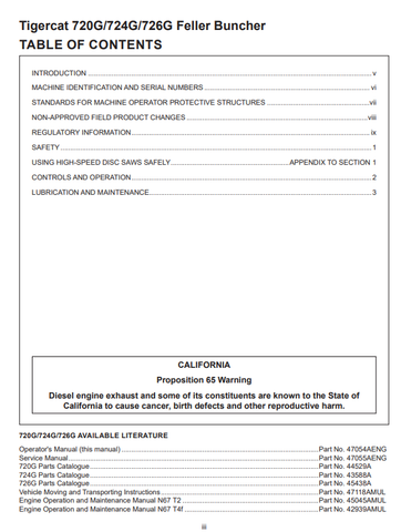 Download Complete Operator/User Manual For Tigercat 726G Feller Buncher | Serial No. (7265001-7266700, 7266001-7266500)
