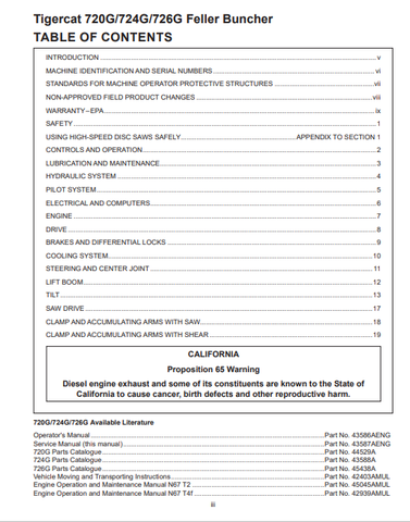 Tigercat 726G Feller Buncher Service Repair Manual (7265001-7266700, 7265001-7266000) - PDF File Download