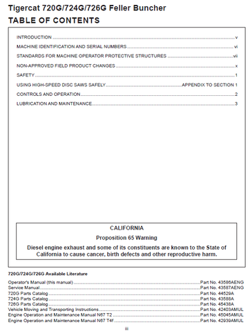 Download Complete Operator Manual For Tigercat 726G Feller Buncher | Serial No. (7265001-7266700, 7265001-7266000)