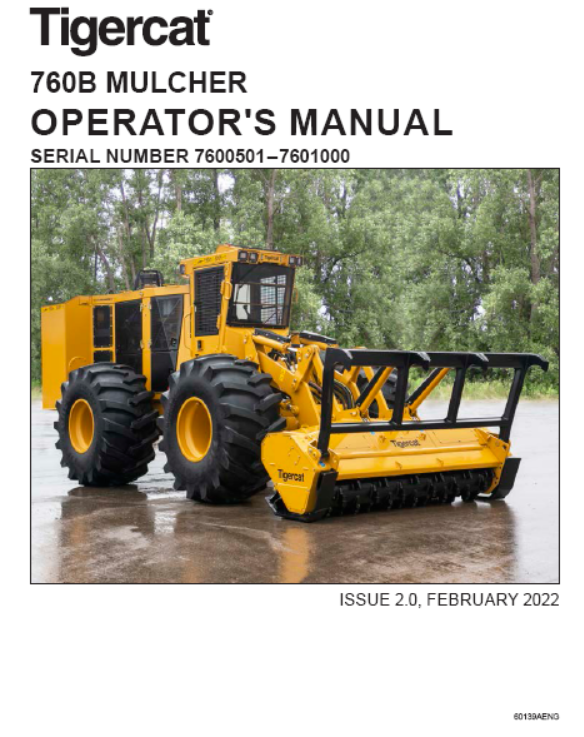 Download Complete Operator/User Manual PDF For Tigercat 760B Mulcher | Serial No. (7600501-7601000)