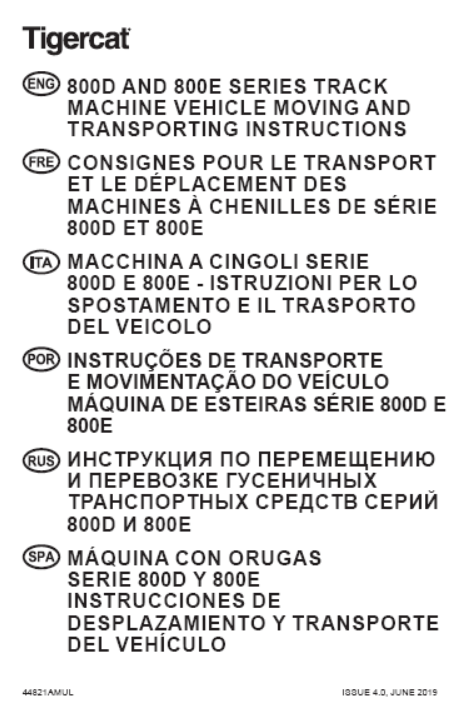 Tigercat 800D & 800E Series Shovel Logger Moving Instructions Manual (85503001-85504000) - PDF File Download