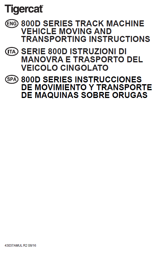 TIGERCAT 800D, L845D FELLER MISCELLANEOUS MANUAL