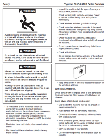 TIGERCAT 820D FELLER BUNCHER OPERATOR MANUAL (82011001-82012000) - PDF FILE DOWNLOAD