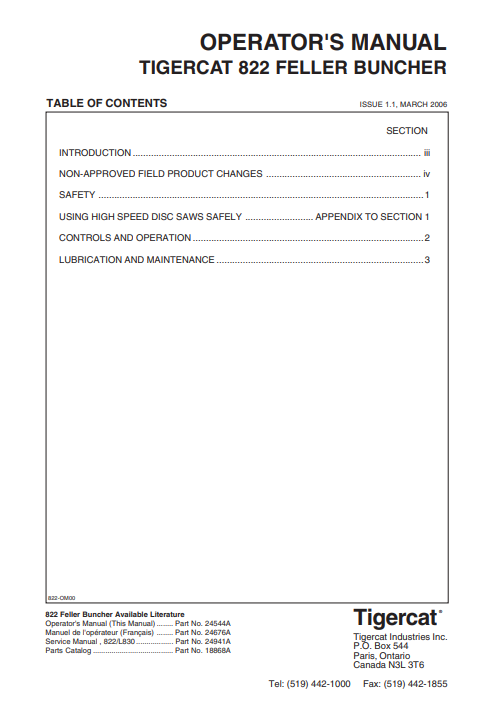 Download Complete Operator/User Manual For Tigercat 822 Feller Buncher | Serial No. (8220101 - 82210999, 822010191-82210999)