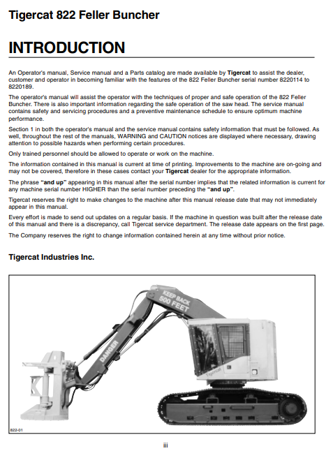 Tigercat 822 Feller Buncher Service Repair Manual (8220101-82210999, 8220101-8220999) - PDF File Download