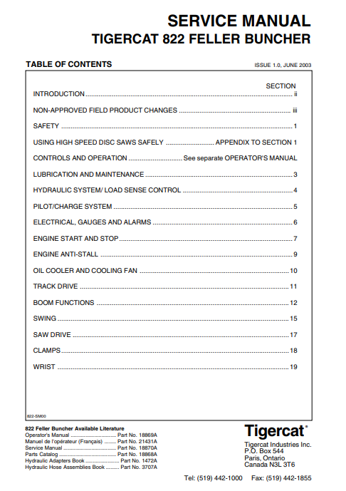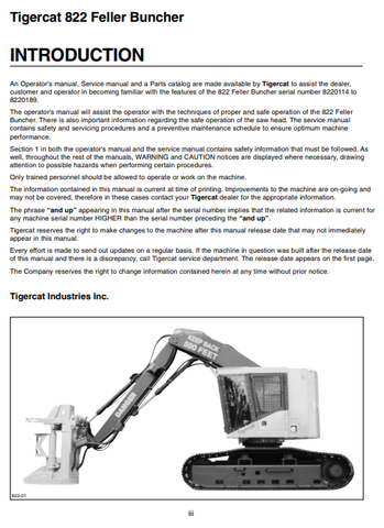 Tigercat 822 Feller Buncher Service Repair Manual (82011001-82012000, 8220101-8220999) - PDF File Download