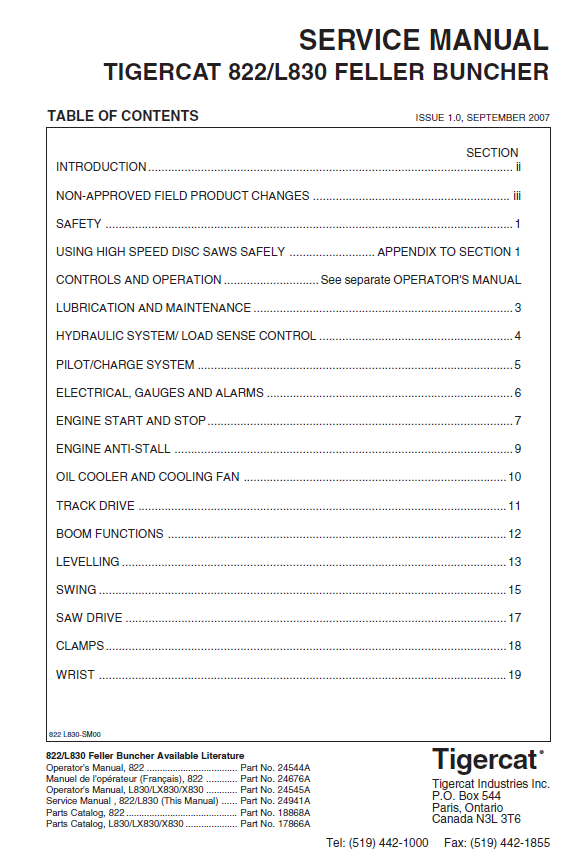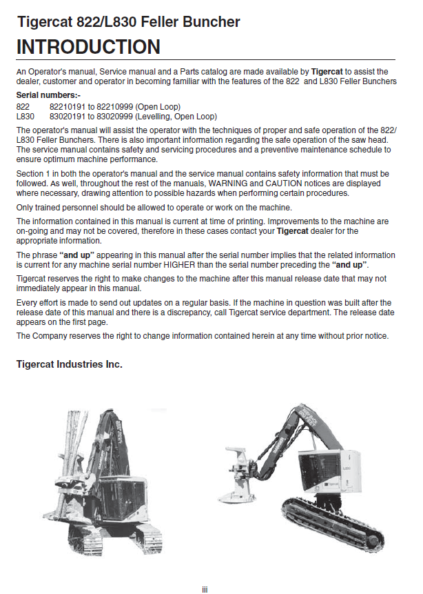 TIGERCAT 822 FELLER BUNCHER MANUAL