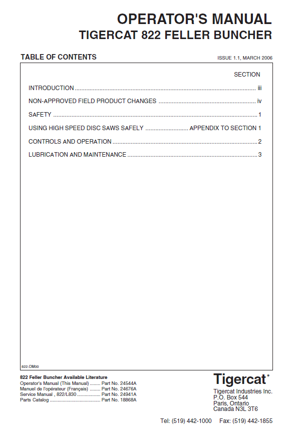 TIGERCAT 822 FELLER BUNCHER MANUAL