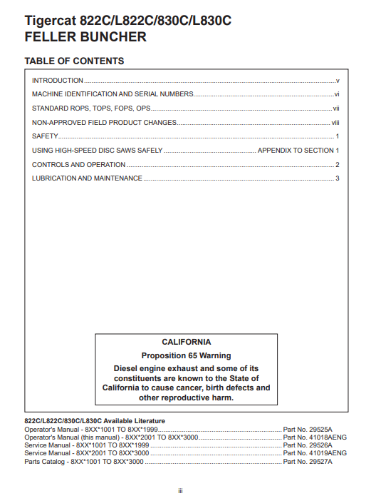 Tigercat 822C Feller Buncher Operator/User Manual (82211001-82213000, 82212001-82213000) - PDF File Download
