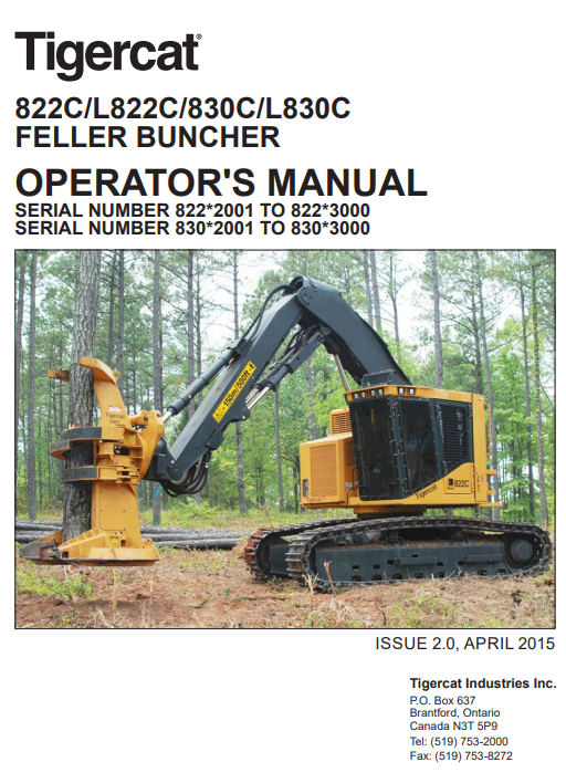 Download Complete Operator/User Manual For Tigercat 822C Feller Buncher | Serial No. (82211001-82213000, 82212001-82213000)