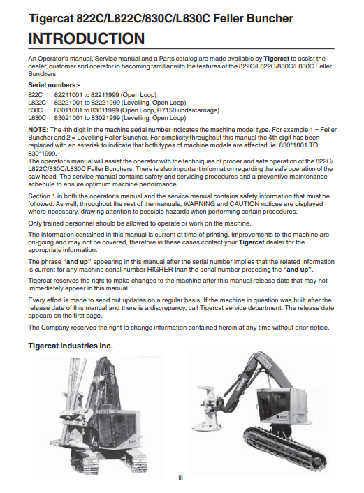 Download Complete Service Repair Manual For Tigercat 822C Feller Buncher | Serial No. (82211001-82213000, 82211001-82211999)