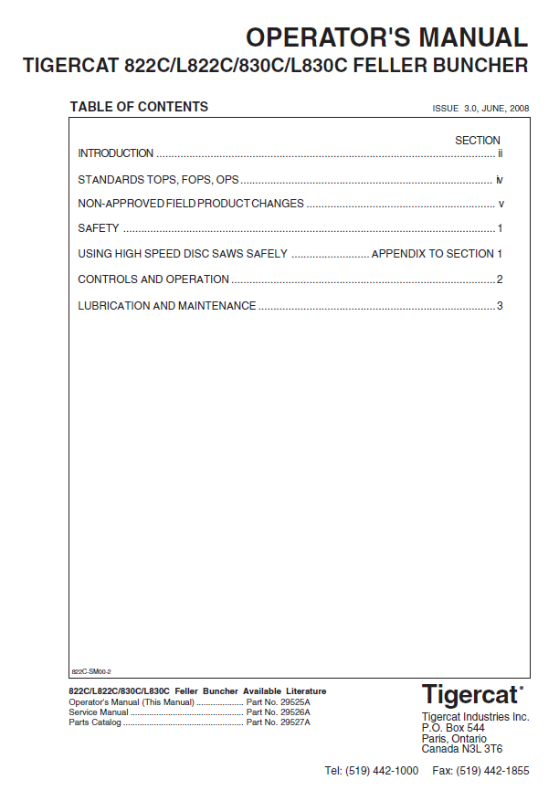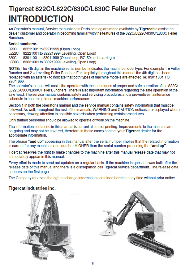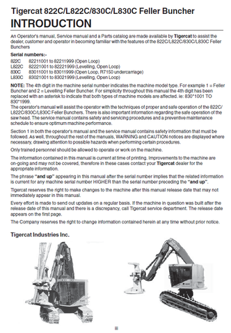 Download Complete Operator Manual For Tigercat 822C Feller Buncher | Serial No. (82211001-82213000, 82211001-82211999)
