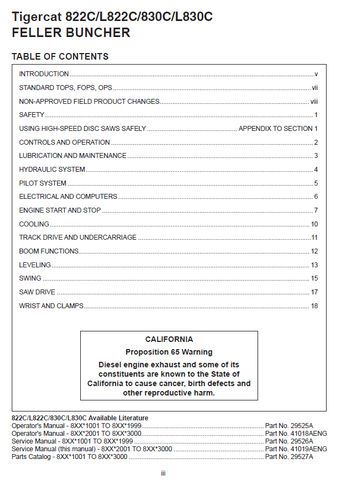 TIGERCAT 822C FELLER BUNCHER SERVICE MANUAL (82211001-82213000, 82212001-82213000) - PDF FILE DOWNLOAD