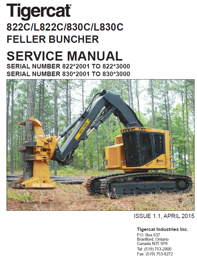 Download Complete Service Manual For Tigercat 822C Feller Buncher | Serial No. (82211001-82213000, 82212001-82213000)