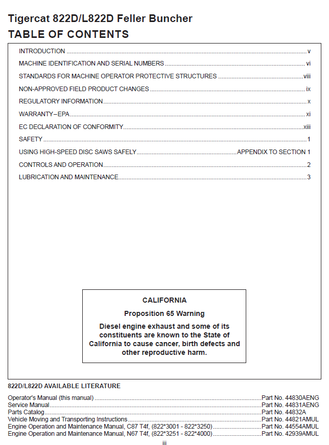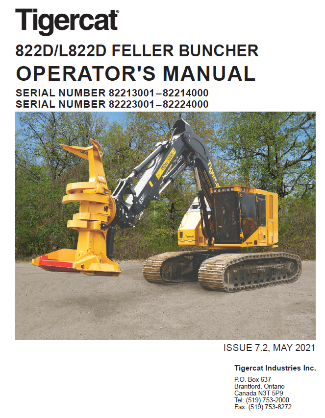 Download Complete Operator Manual For Tigercat 822D Feller Buncher | Serial No. (82213001-82214000)