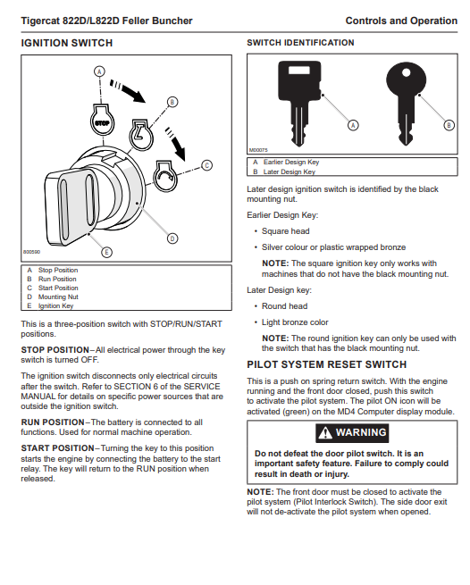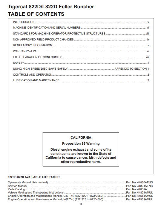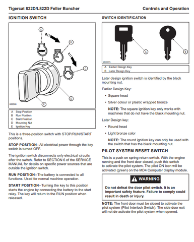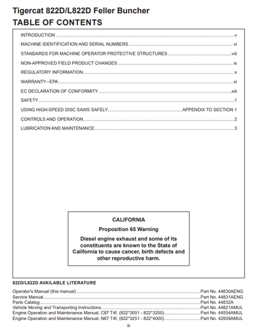Tigercat 822D Feller Buncher Operator/User Manual (82213001-82214000) - PDF File Download