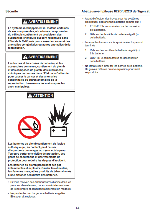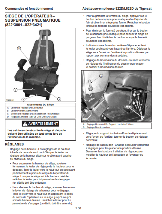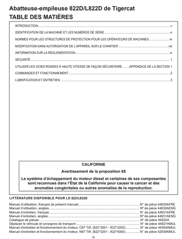 Download Complete Operator/User Manual PDF For Tigercat 822D Feller Buncher | Serial No. (82213001-82214000) - French