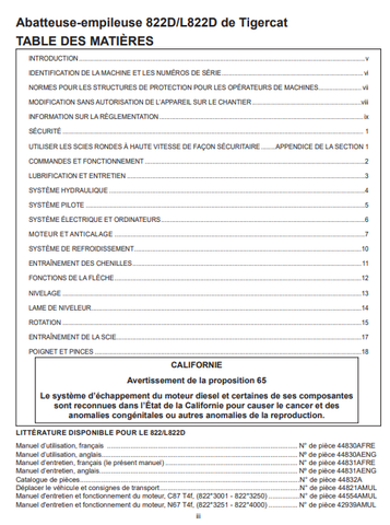 Download Complete Service Repair Manual PDF For Tigercat 822D Feller Buncher | Serial No. (82213001-82214000) - French