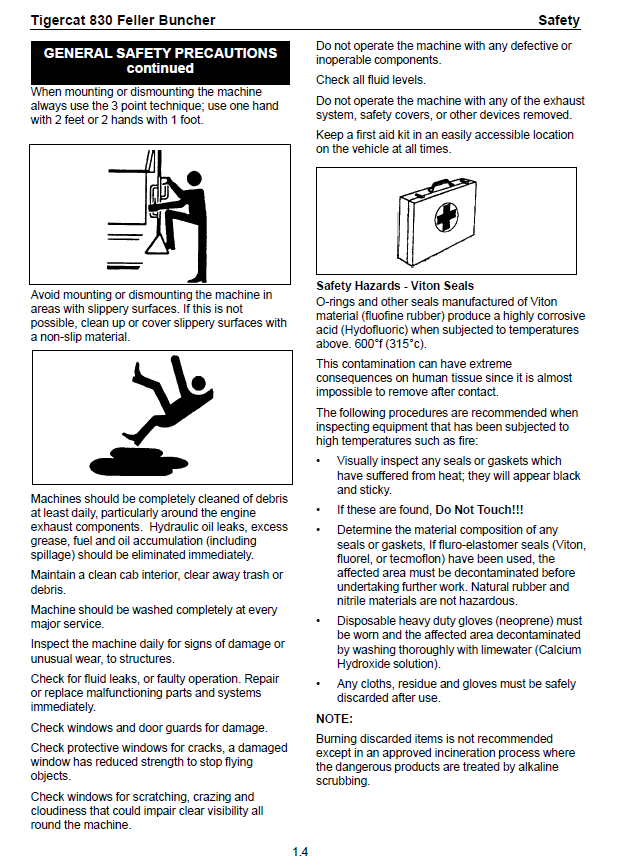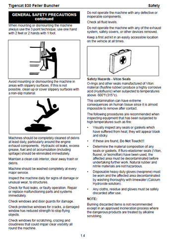 TIGERCAT 830 FELLER BUNCHER OPERATOR MANUAL (8300113-8300499) - PDF FILE DOWNLOAD