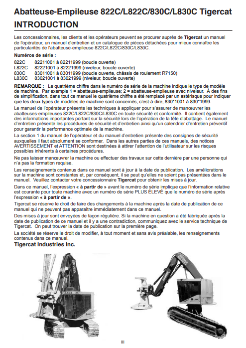 Download Complete Service Repair Manual PDF For Tigercat 830C Feller Buncher | Serial No. (83011001-83013000, 83011001-83011999) - French