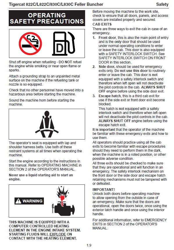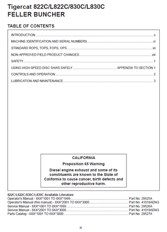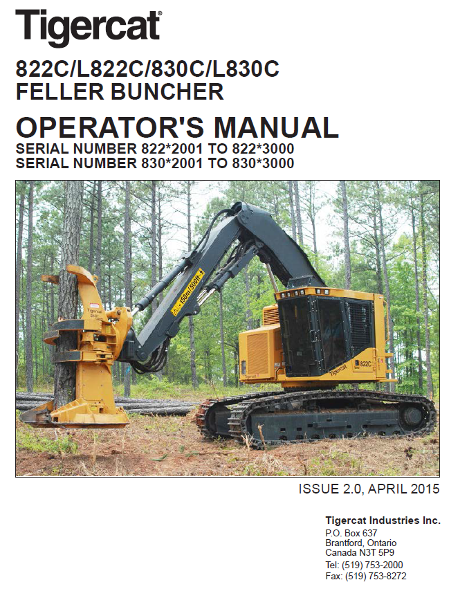 Download Complete Operator Manual For Tigercat 830C Feller Buncher | Serial No. (83011001-83013000, 83012001-83013000)