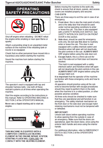 TIGERCAT 830C FELLER BUNCHER OPERATOR MANUAL (83011001-83013000, 83012001-83013000) - PDF FILE DOWNLOAD