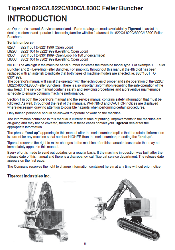 Download Complete Service Manual For Tigercat 830C Feller Buncher | Serial No. (83011001-83013000, 83011001-83011999)